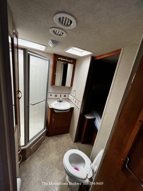 Model 31M with 2 slide-outs. A nice and well maintained motorhome. Built on a Ford E450 Chassis and powered by a 6.8L Triton V-10 with a 5-speed automatic transmission, 83,313 miles, Onan 4 KW generator, patio awning, slide topper awnings, roof top A/C, rear ladder, hitch and generous basement storage.